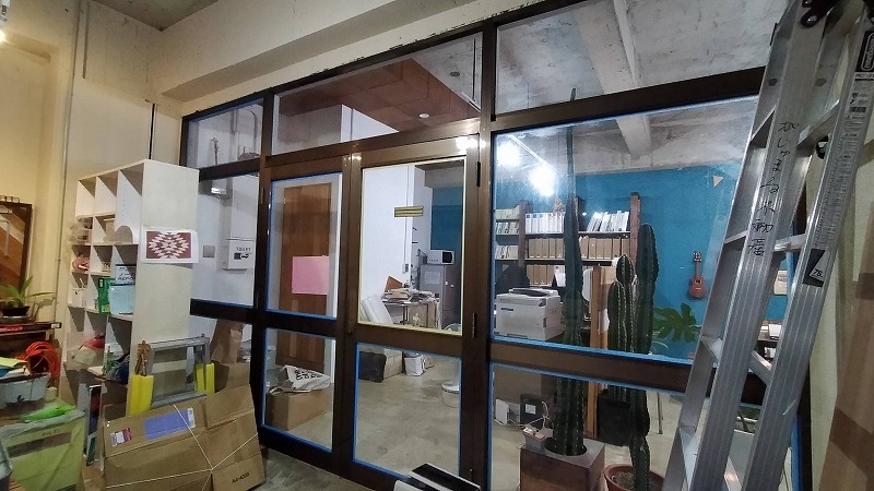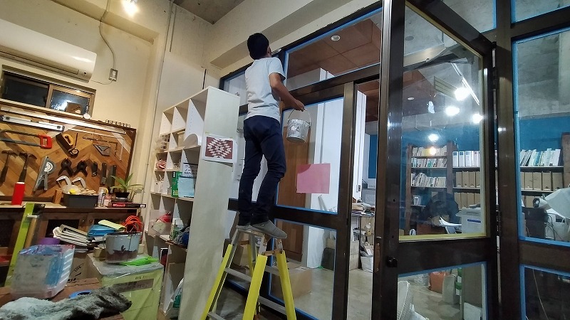 2年前の事務所移転時から、サッシを塗り替えようと計画していたのですが、「仕事が忙しいから」と延ばし延ばしに。。。
