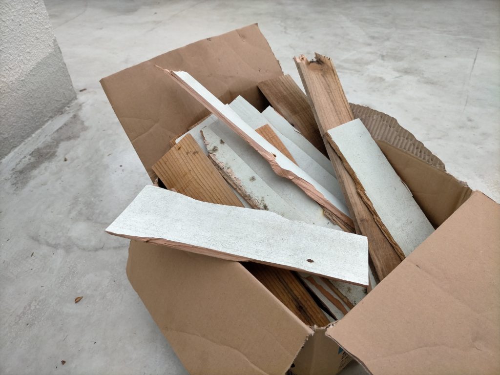 薪はもちろん、解体現場の廃材で(笑)