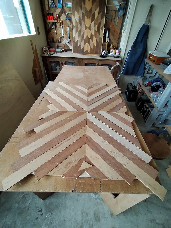 廃材から出たベニヤ(合板)を使ったローテーブル兼ウォールアート。