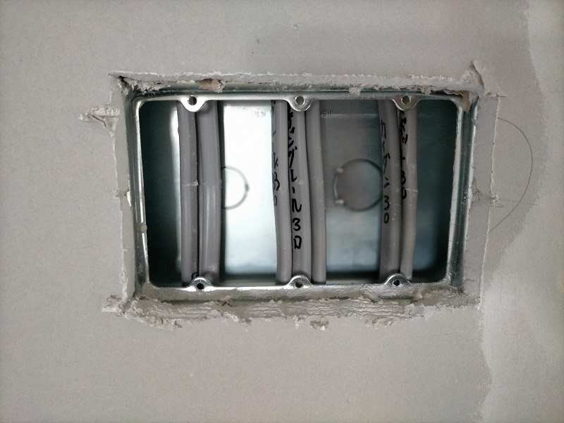 配線を間違えないように、電気屋さんがしっかりと何用の配線かを書いてくれていますね。(ありがたや~)