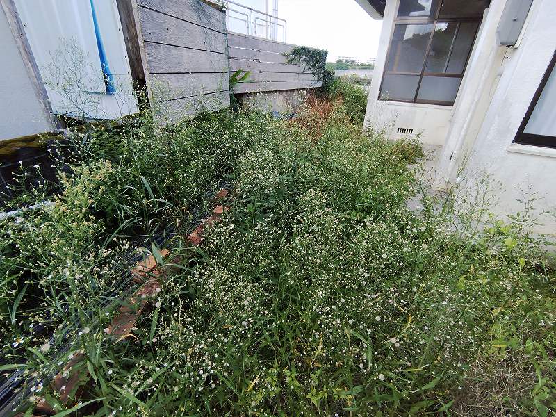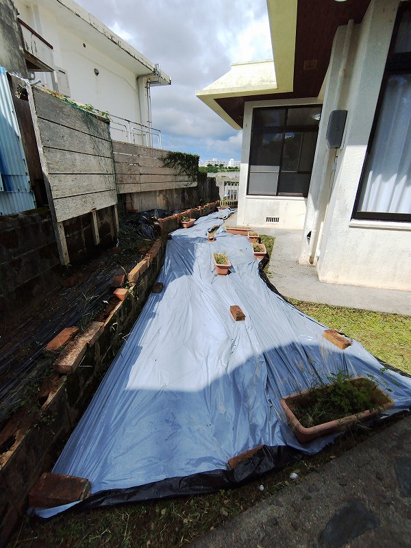 約1時間半、草と格闘し、今後は伸びないように遮光シートを敷きました。