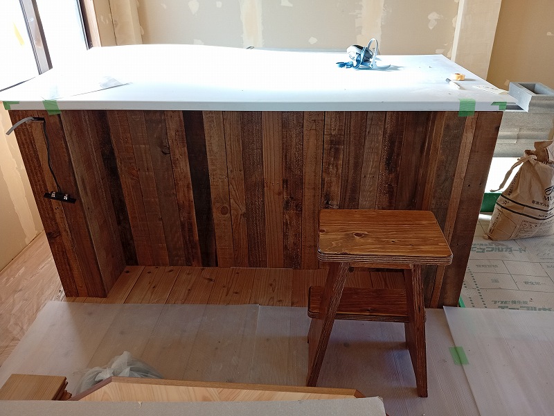古材仕様のカウンターキッチンとマッチせず、オイル塗装しました。