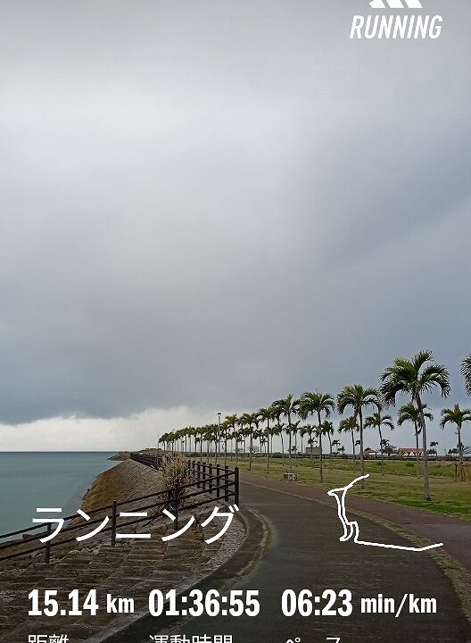 途中から晴れてきたので、なんとか15km走り切るコトができました。