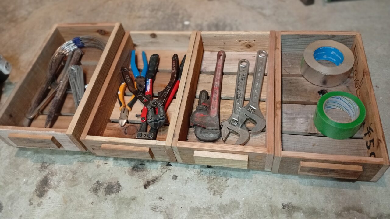 古材でスタックタイプの収納箱を作って、