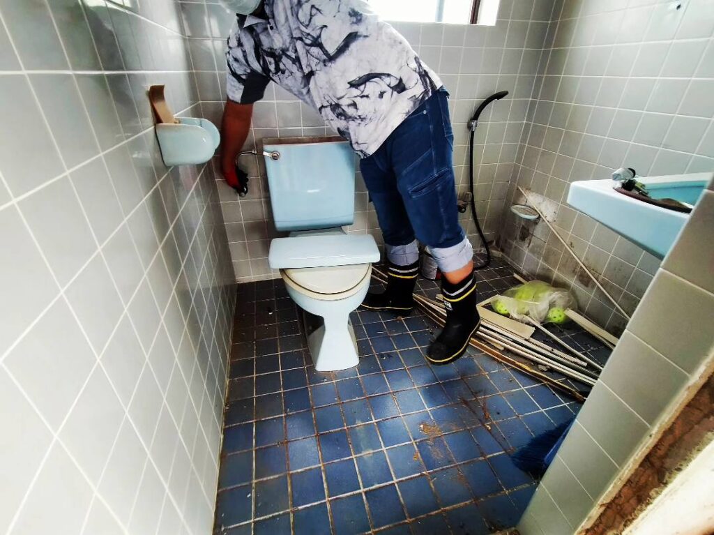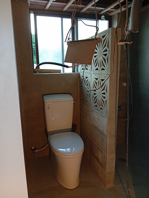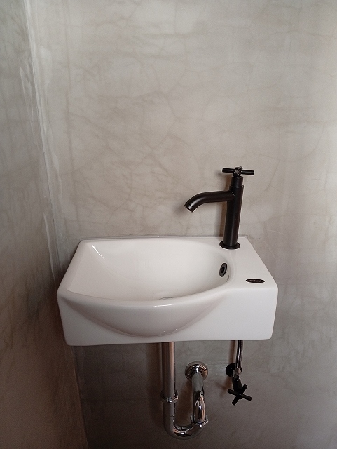 浴室内の手洗いと便器は職人さんに設置してもらいました。