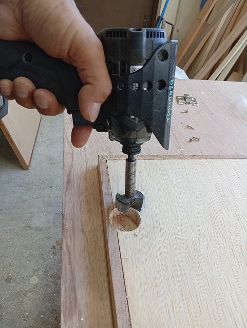 まず扉にザクリビットで穴を開けます。(35mm)