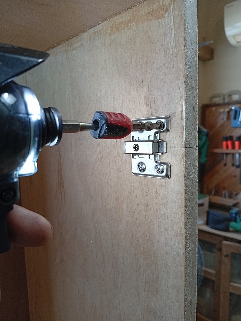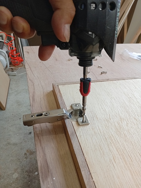 次にその穴に蝶番を取り付けます。