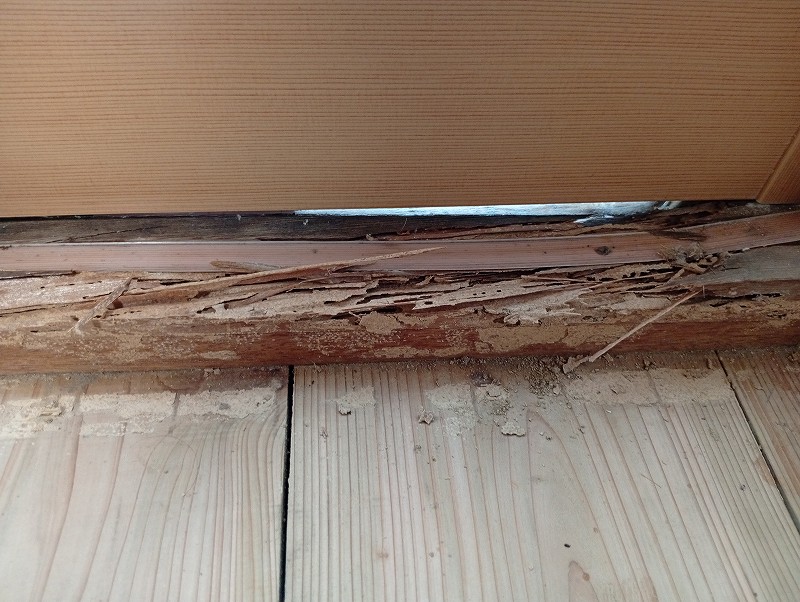 建物などの傾きはありませんが、シロアリ被害の箇所が。。