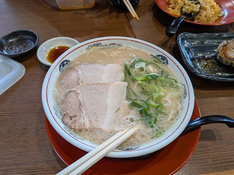 お昼は、息子の要望で豚骨ラーメン。