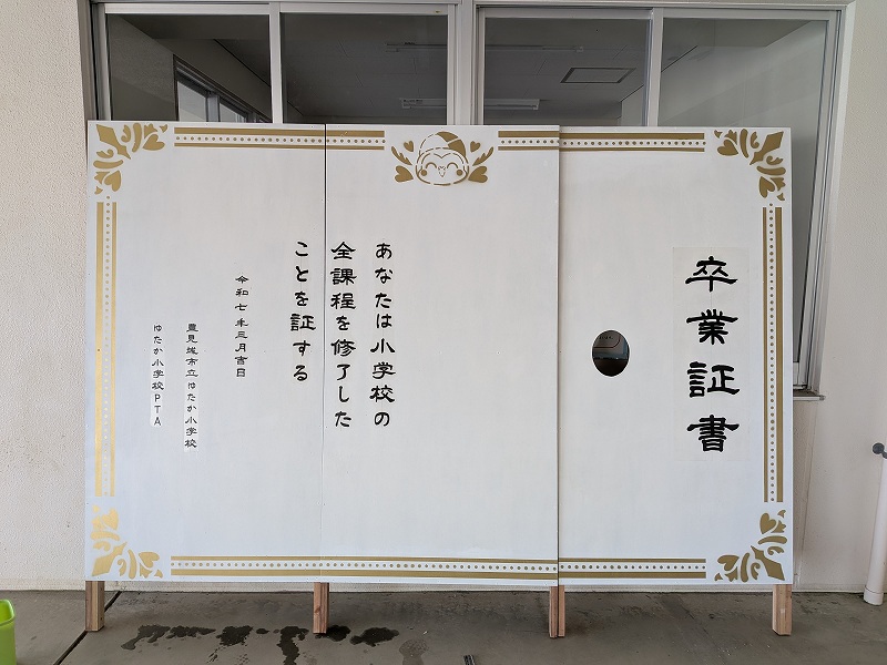 地域のこと 卒業式に笑いと涙を G@KK 2026年3月17日 みなさんこんにちは!沖縄県豊見城市で「安心できる中古住宅購入と住宅リホームの専門店」をしているガクシです!さて、前回は「いとまん平和マラソン走ってきました!」というお話でした。今回は「卒業式に笑いと涙を」というお話です。明日の卒業式を前に無事フォトスポットが完成しました。 最近流行りの卒業証書型。今回は、顔ハメパネル対応にしましたw 卒業生のみんなのたくさんの笑顔と涙が見れることを、たのしみにしています。というわけで、じゅうをもっとじゆうに♪