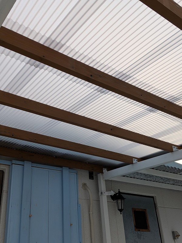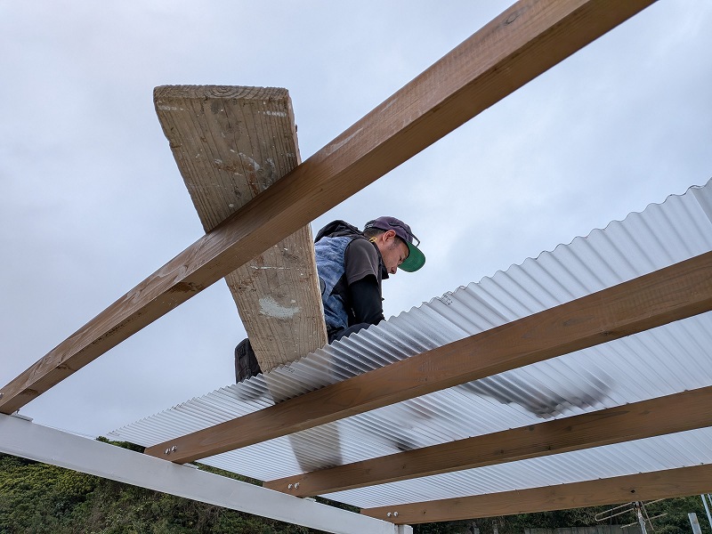 解体作業に時間取られましたが、ポリカ屋根の取り付けはスムーズで、