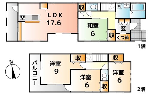 南向きのリビングや、各居室に収納を備えた